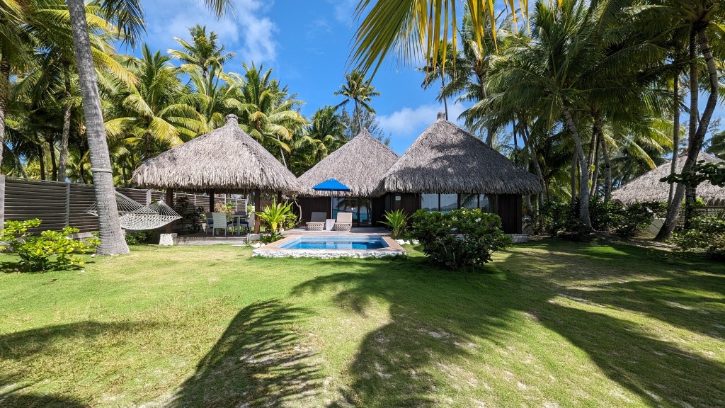 The St Regis Bora Bora has 91 rooms (77 overwater bungalows and 14 beach villas). One reason we chose the St Regis over the Four Seasons for one of our trips is because we wanted a beach villa given that we were traveling with a toddler who could not swim yet. We wanted her to have space to run around and play. We were able to get a beach villa facing the lagoon with a private pool. It was perfect for our family. Our daughter could run around on the beach, and we could all swim in the privacy of our own villa. The price for the beach villa at the St Regis was about 1/4 of the price for the one-bedroom beach villa at the Four Seasons.